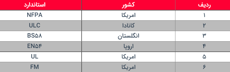 جدول استاندارد های سیستم اعلام حریق آتش نشانی