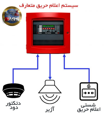 - سیستم اعلام حریق متعارف (Conventional): هنگام مراجعه به سیستم های اعلام حریق، به احتمال زیاد اصطلاح یک سیستم اعلام حریق متعارف یا معمولی یا کانونشنال را خواهید شنید. یک سیستم اعلام حریق متعارف یک هشدار وقوع آتش است که منطقه آشکارساز فعال یا نقطه تماس دستی را توسط یک LED شناسایی می کند. این متفاوت از یک پیام متنی است که در سیستم اعلام حریق آدرس پذیر در یک صفحه نمایش LCD ایجاد می شود. در واقع در سیستم اعلام حریق متعارف یا کانونشنال منطقه حدودی حریق مشخص می شود.